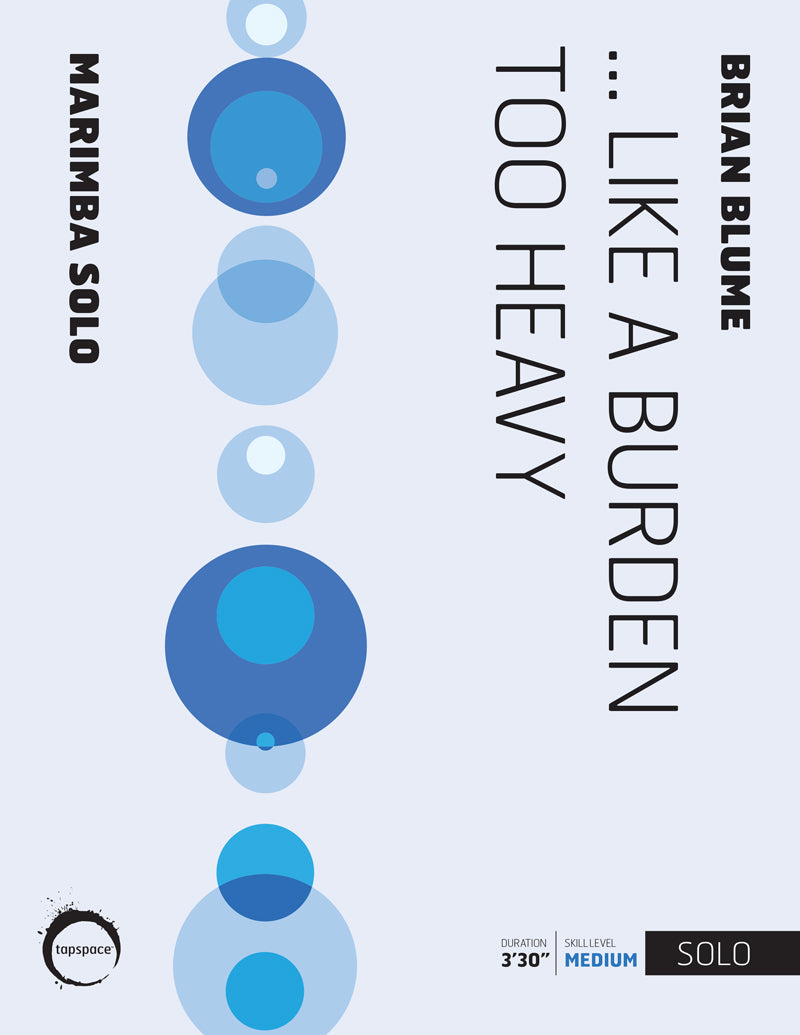 ... like a burden too heavy is a marimba solo by composer/percussionist Brian Blume. It’s written to reflect the struggles and limitations we face in conjunction with the “human condition.” There is a heaviness and sadness in Blume’s harmonic treatments which flow seamlessly to create a lyrical work that stands on its own regardless of the fact that it was written for marimba.