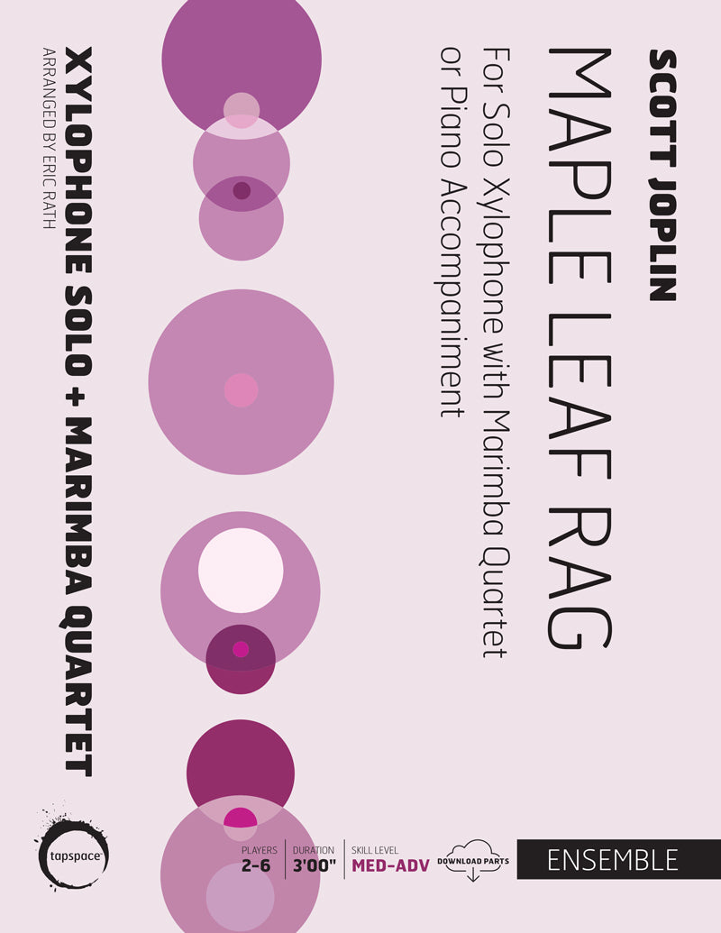 Scott Joplin’s Maple Leaf Rag, composed in 1899, is one of the most iconic ragtime pieces in the genre’s history. Selling 75,000 copies in its first six months of publication, it is just as popular today as it was when it was first released. Now, this inimitable work is available for xylophone soloist and marimba quartet thanks to Eric Rath’s wonderful arrangement. In addition to the marimba quartet, a piano accompaniment is provided so that the soloist can perform in a more intimate setting. Maple Leaf Rag can also be found in The Golden Age of Ragtime, a compilation of five classic ragtime pieces arranged by Ralph Hicks and Eric Rath!